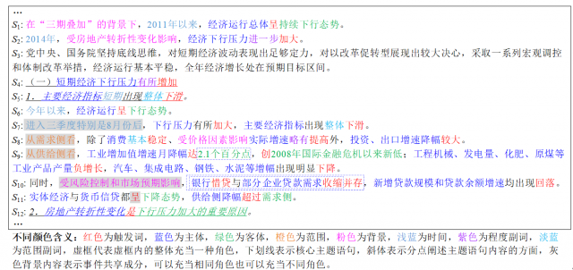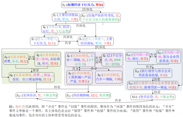 图1.6 财经评论中的某个篇章中所包含的事件信息及事件意义之间语义逻辑图